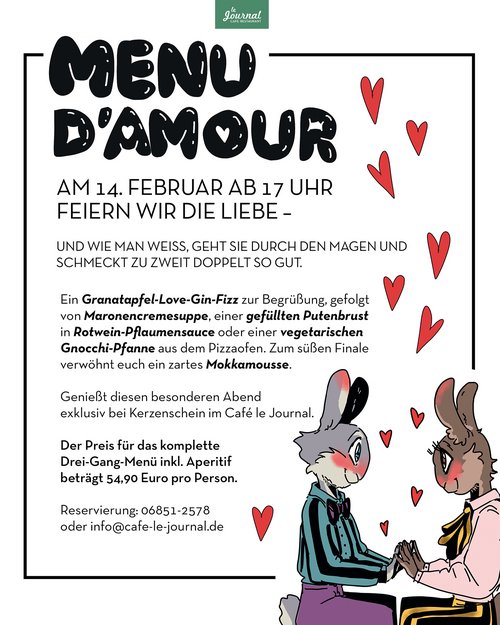 Reservierung: 06851‑2578 oder info@cafe-le-journal.de
